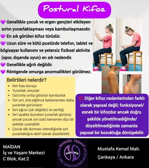 Diğer kifoz nedenlerinden farklı olarak yapısal değil; fonksiyonel / esnek bir kifozdur.
