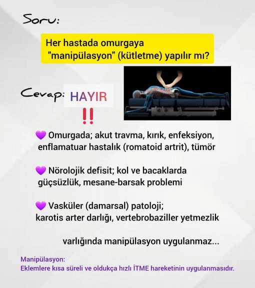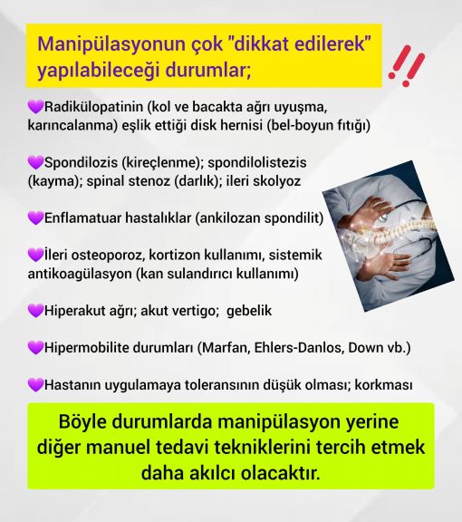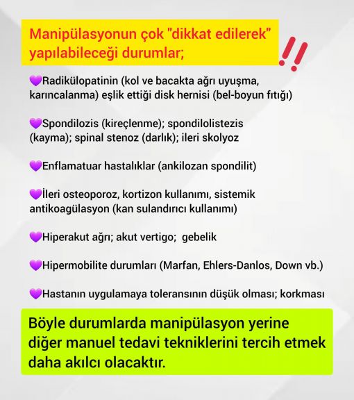 - En önemlisi ise kontrendikasyonları (manipülasyon uygulanmaması gerken durumlar) dikkate almamaktır.