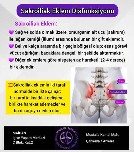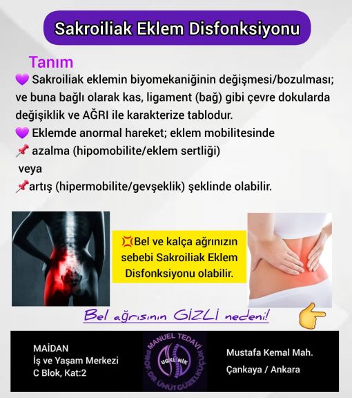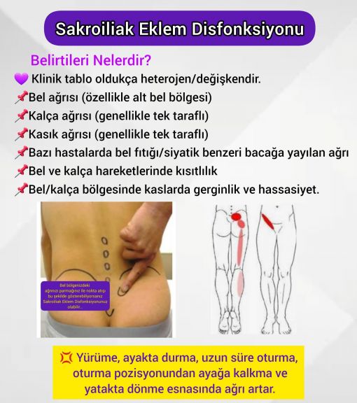Bel ağrılarının %15-30 sebebi sakroiliak eklem disfonksiyonudur.