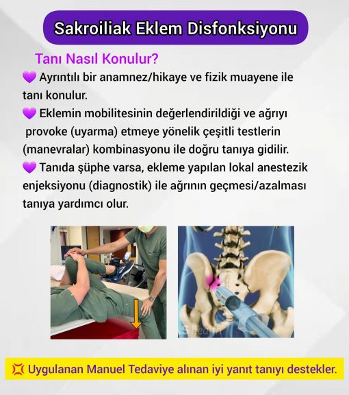 Tanı için en kritik nokta ağrı kaynağı olarak sakroiliak eklemi düşünmekten geçer.