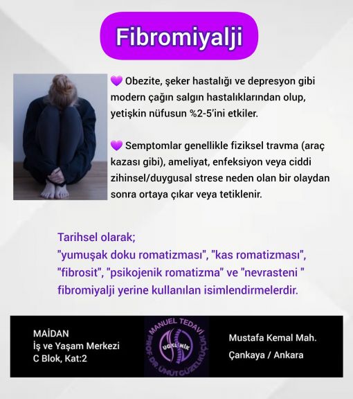 - Obezite, şeker hastalığı ve depresyon gibi modern çağın salgın hastalıklarından olan fibromiyalji oldukça sıktır; yetişkin nüfusun yaklaşık %2-5’ini etkiler.