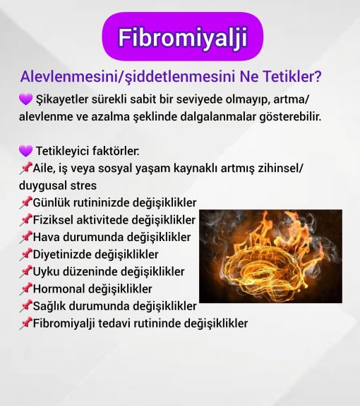 - Hayatınızdaki bazı önemli olaylar veya değişiklikler, stresinizi artıran herhangi bir etken fibromiyaljinin alevlenmesini tetikleyebilir.
