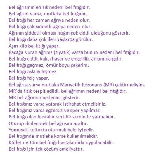 Bel fıtığı ile ilgili ''Doğru Bilinen Yanlışlar''