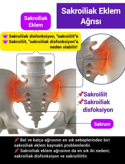 - Sakroiliak eklem ağrısının iki önemli nedeni sakroiliit ve sakroiliak eklem disfonksiyonudur.